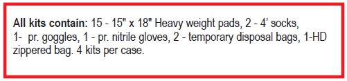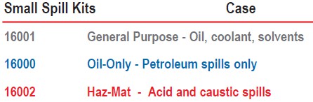 All kits are packed in a heavy duty reusable vinyl bag with zipper. Great for areas in your plant prone to small spills or store in delivery vehicles for quick access.